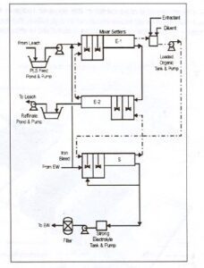 عملياتي كه در فرآيندهاي انحلال , استخراج باحلال وEW انجام مي شود به صورت سه چرخه محلول بسته عمل مي نمايد. مانند شكل شماره ( 1 ). چرخه اول مس موجود در محلول حاصل از فرآيند انحلال جذب ملكول استخراج كننده موجود در فاز آلي مي شود وتشكيل فاز آلي اشباع از مس ( Loaded Organic ) را مي دهد. چرخه دوم واحدSX را نشان مي دهد . محلول ارگانيك باردار در تماس با الكتروليت قرار گرفته و مس محتوي خود را به الكتروليت پس مي دهد وآن را به الكتروليت قوي تبديل مي نمايد . در نهايت چرخه سوم قرار داردكه الكتروليت قوي به واحد EW منتقل ميشود وپس از آنكه مس آن جذب ورقه هاي كاتد شد مجددا به واحد SX منتقل ميگردد.